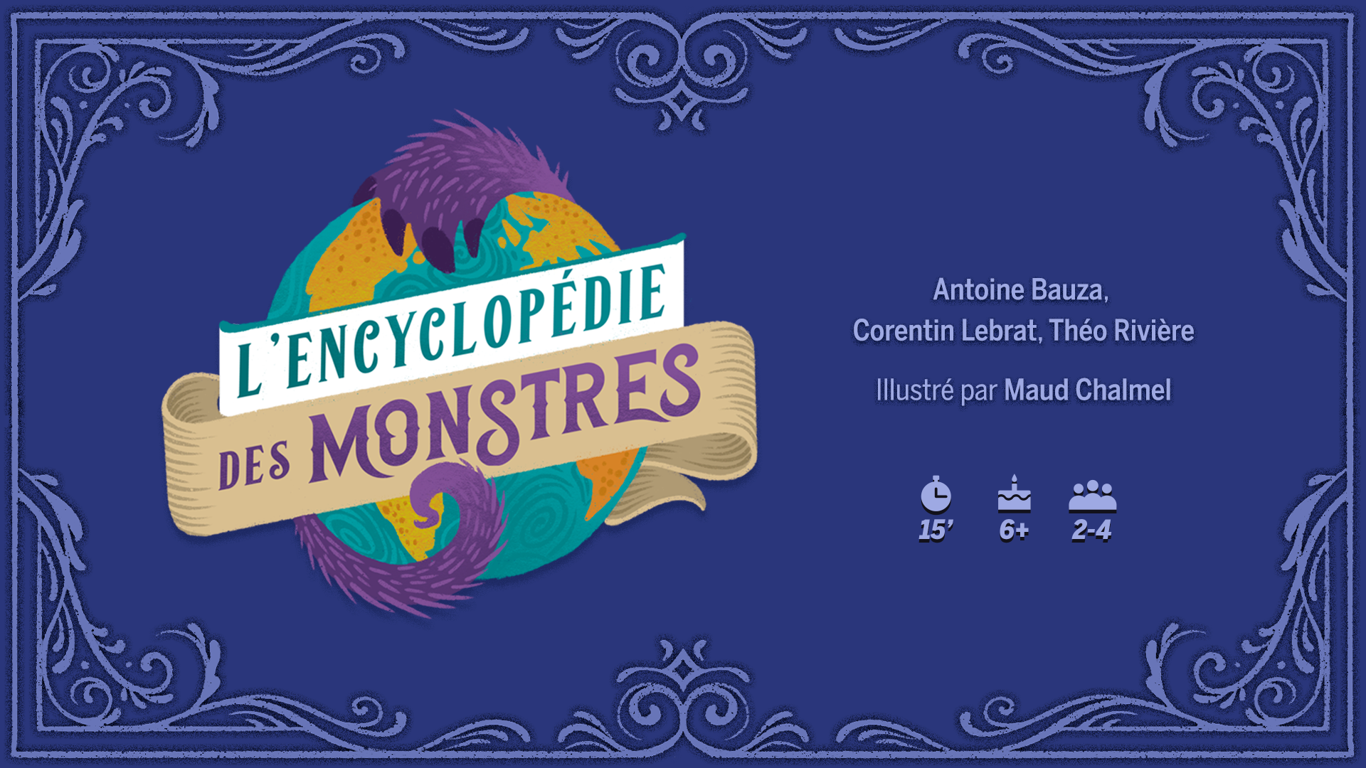 Le Scorpion Masqué (Zombie Kidz Évolution, l'île des Mookies) est fier de présenter un projet de longue date, l’Encyclopédie des Monstres, un jeu de mémoire coopératif et évolutif pour enfants proposé par Antoine Bauza (7 Wonders, la Chasse aux Monstres, Mia London), Corentin Lebrat (Draftosaurus, Mia London) et Théo Rivière (Dixit Kids, Détective Charlie).